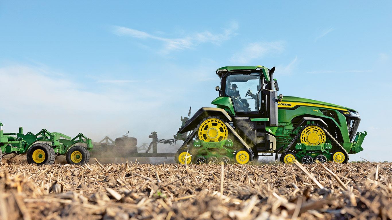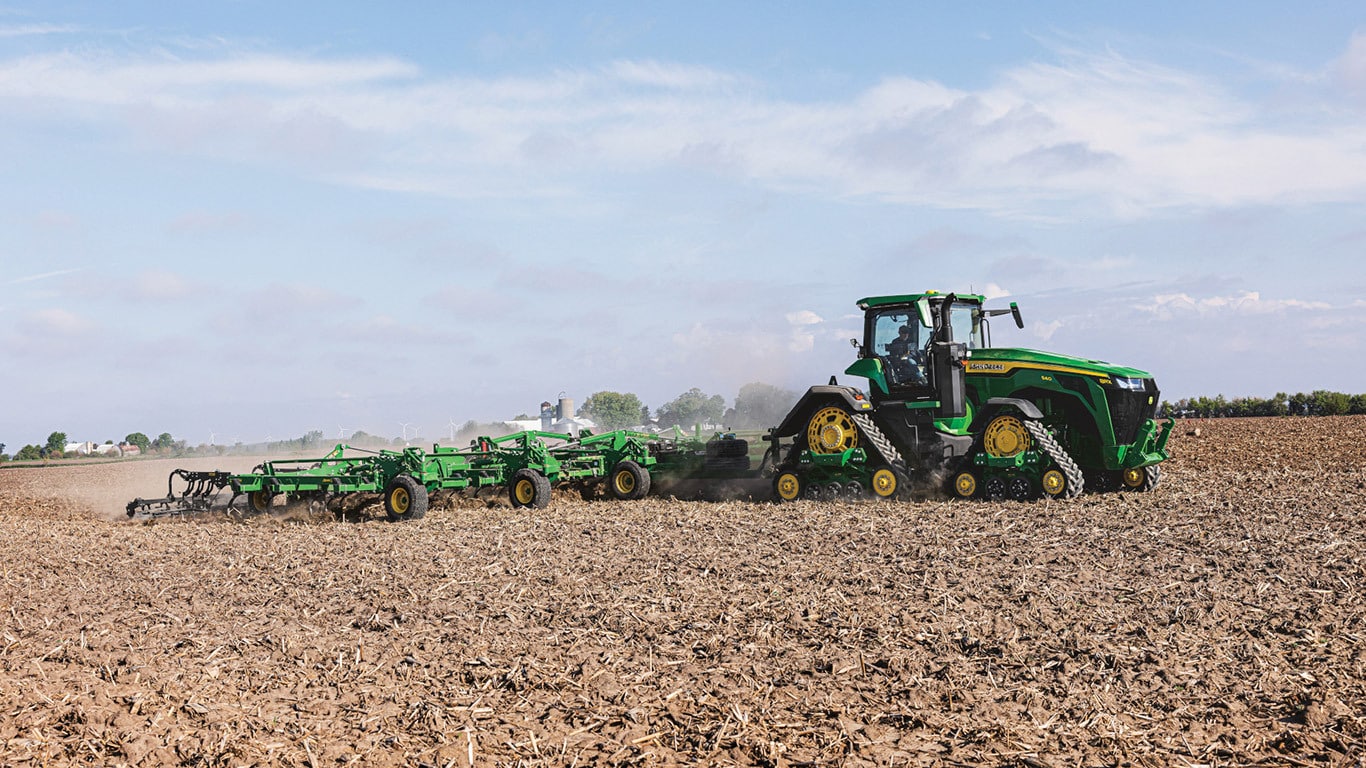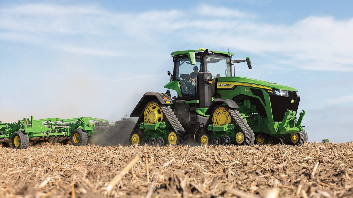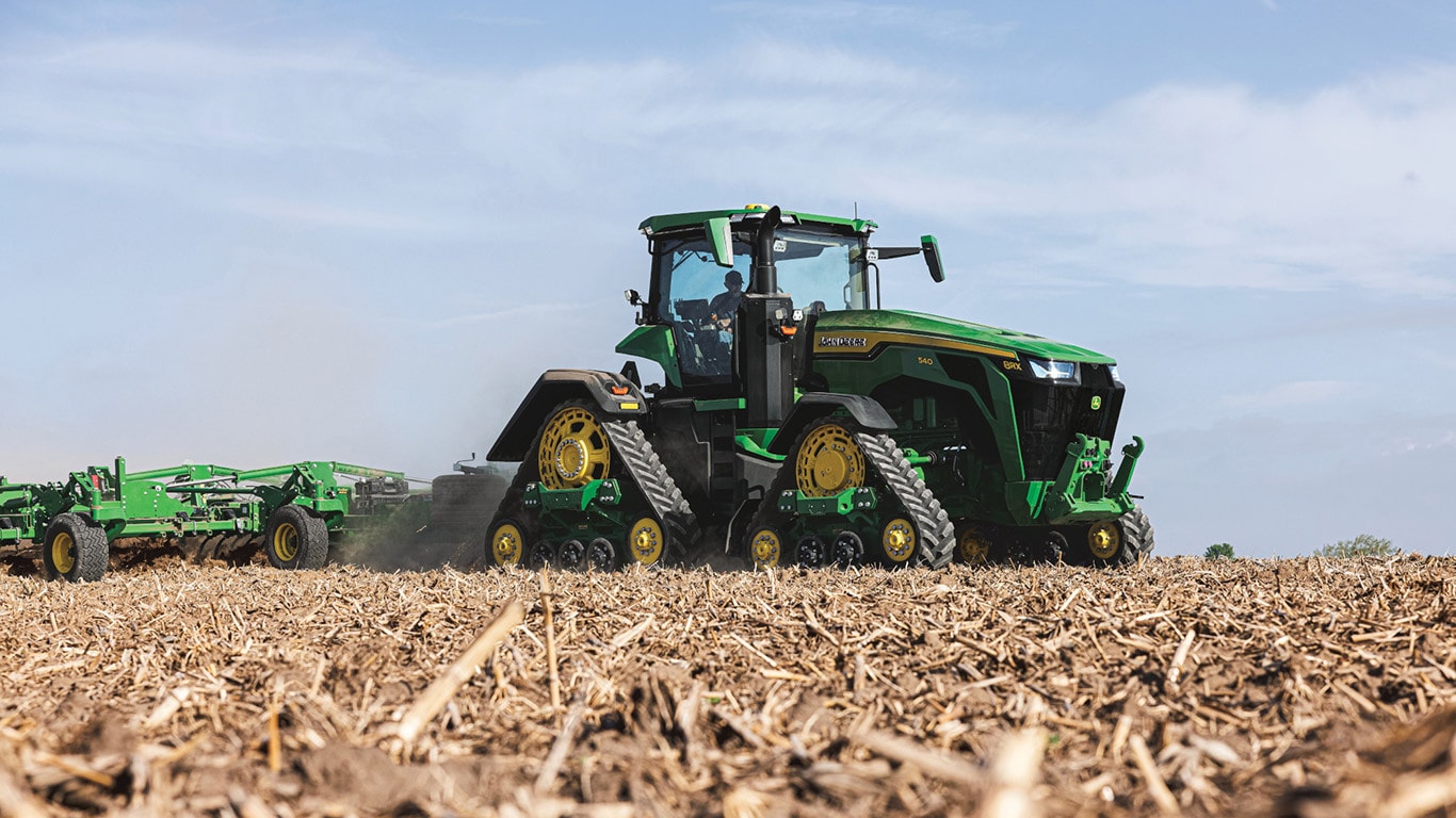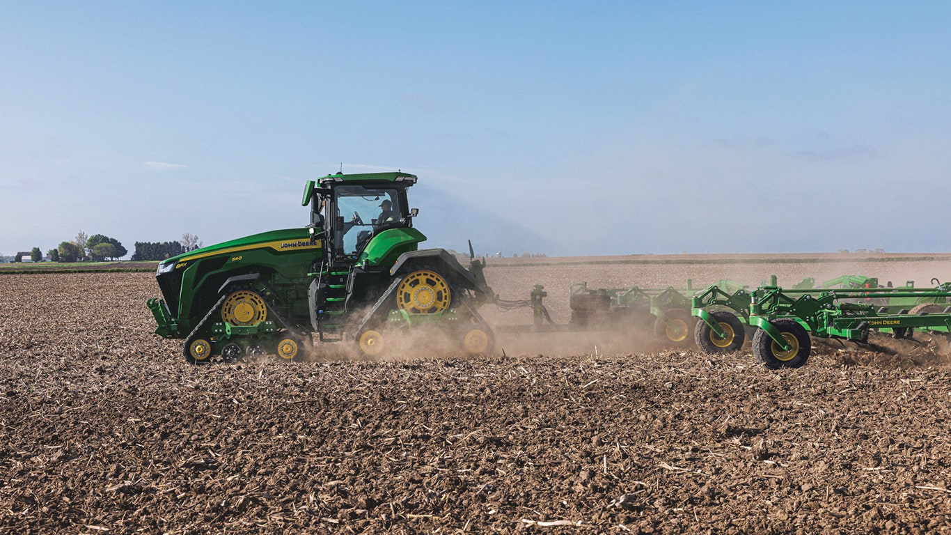 Novi visokozmogljivi traktorji 8R zagotavljajo vlečno moč, ki jo potrebujete za najzahtevnejše priključke. Motor JD14 s funkcijo Peak Power IPM zagotavlja do 473 kW (634 hp) natanko takrat, ko je potrebna največja produktivnost v vseh pogojih. Edinstveni menjalnik eAutoPowr™ omogoča brezstopenjsko pospeševanje in do 8 % boljši prenos moči v primerjavi s standardnimi hidromehanskimi brezstopenjskimi menjalniki*.